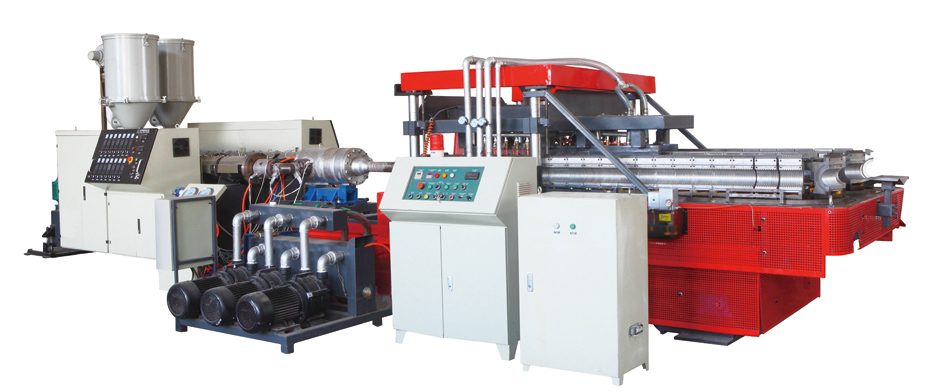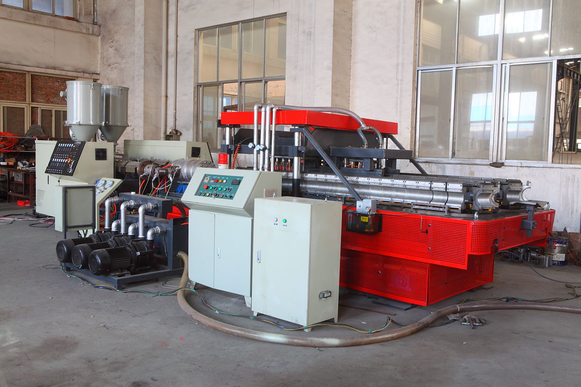 對(duì)于PVC,您可以選擇錐形雙螺桿擠出機(jī):這條線還有模具和波紋成型機(jī)的。模具塊可以很容易地改變,他們都配有空氣或水冷系統(tǒng)。該生產(chǎn)線還可以裝備與西門子公司的西門子控制系統(tǒng)。