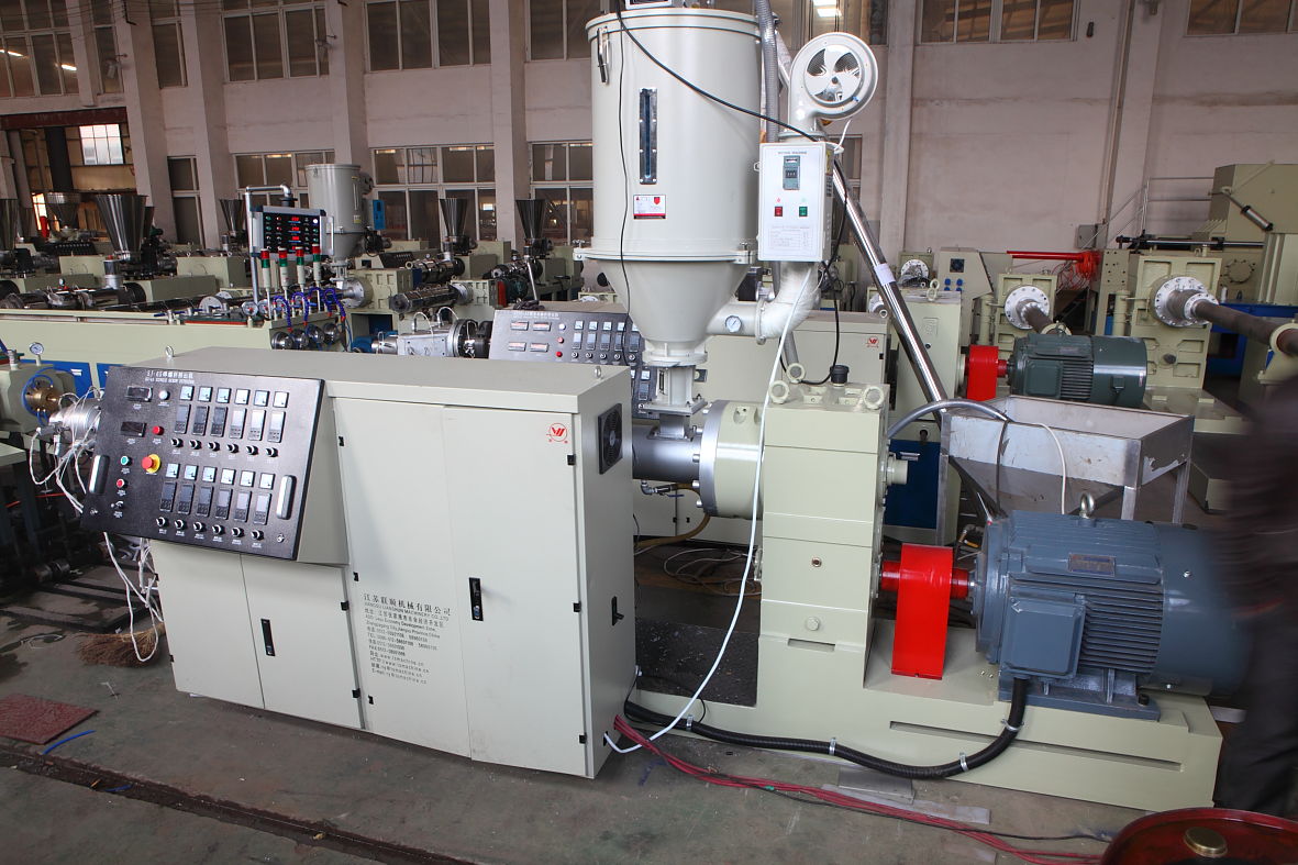 1.單螺桿擠出機(jī):采用長(zhǎng)L / D,螺桿,擠出高容量,穿制服的塑化。擠出機(jī)和牽引機(jī)的電機(jī)采用進(jìn)口AC/ DC變換器的速度調(diào)節(jié)器。