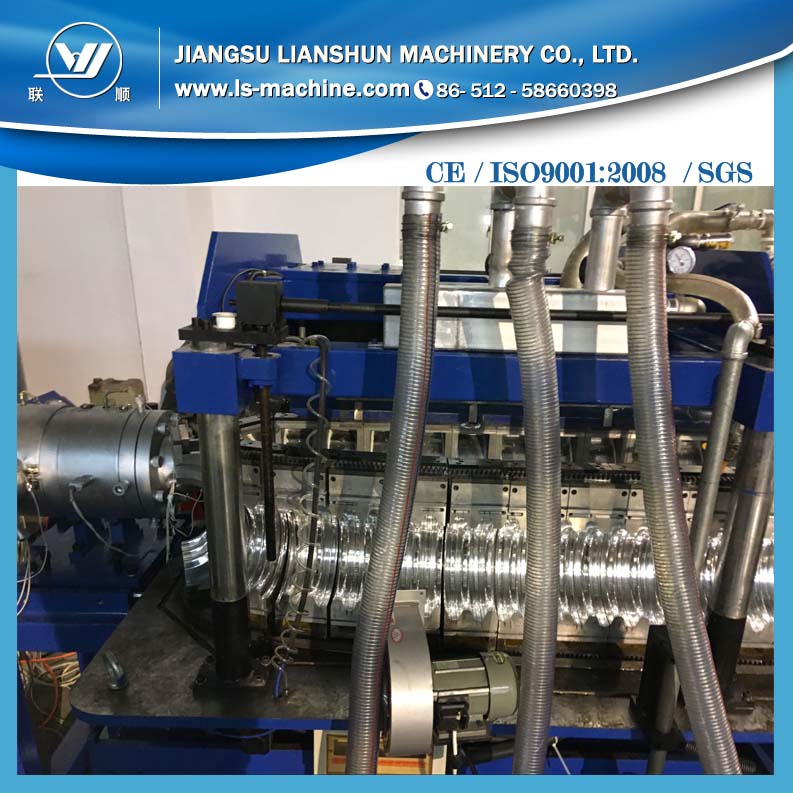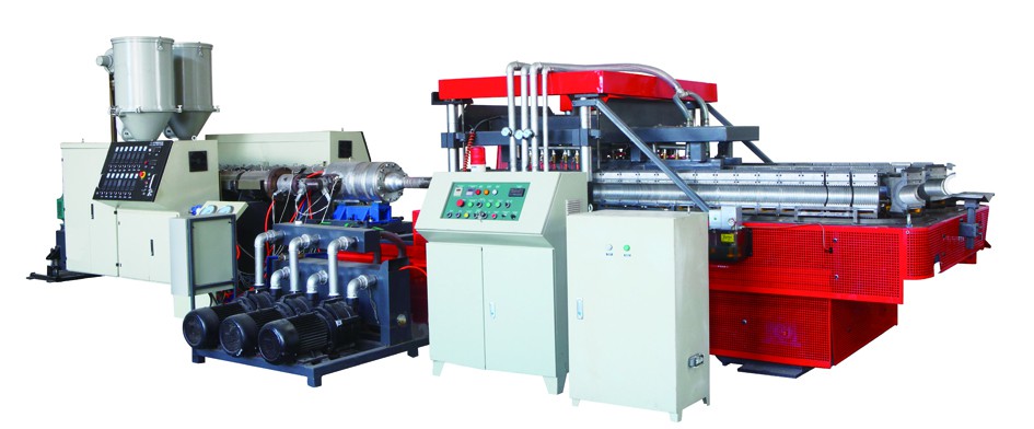 3. 波紋管成型機:采用臥式結(jié)構(gòu),鏈式傳動設(shè)計,配有開放式水冷卻系統(tǒng)以及真空成型系統(tǒng),可保證連續(xù)生產(chǎn)時較高的生產(chǎn)速度。